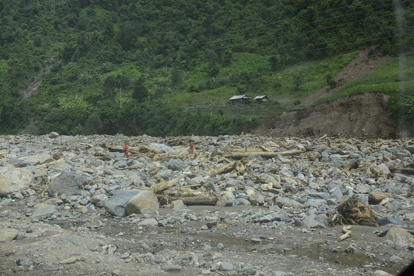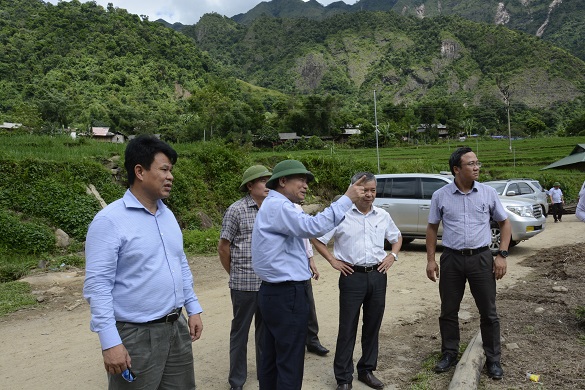 Sau khi thị sát hơn 10km từ cầu Nậm Păm dọc theo tỉnh lộ 109, Bộ trưởng cùng đoàn công tác trực tiếp kiểm tra các công trường sửa đường và thăm hỏi người dân bị thiệt hại do lũ quét. Đoàn công tác đã chứng kiến một khu vực hơn 300ha đất đai phủ kín màu xanh của ruộng bậc thang, với những nếp nhà san sát ven suối giờ hoang tàn, chỉ còn toàn đá.
