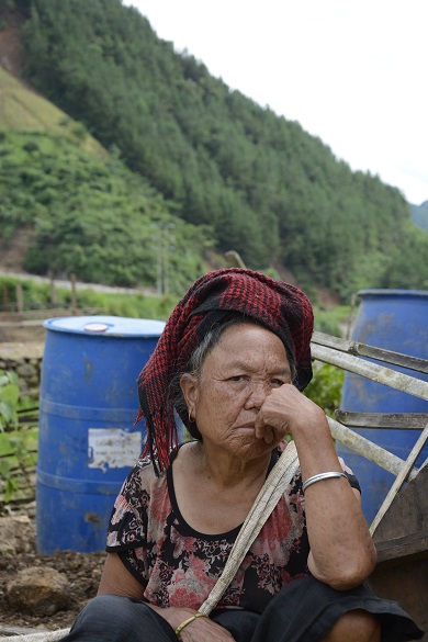 Ánh mắt buồn của cụ bà Lò Thị Miên khi cơ nghiệp và ngôi nhà đã trôi theo dòng lũ và tài sản còn lại chỉ có đôi bàn tay trắng