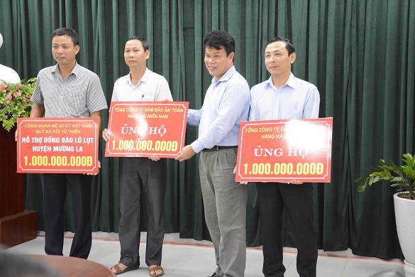 Trong chuyến công tác chỉ đạo khắc phục hậu quả lũ quét tại Mường La, Bộ trưởng Trương Quang Nghĩa, Chủ tịch Công đoàn GTVT Việt Nam đã trao 1 tỷ đồng từ Quỹ xã hội từ thiện ngành GTVT, 1 tỷ đồng hỗ trợ của CNCNV Tổng công ty Đảm bảo hàng hải Miền Bắc và 1 tỷ đồng hỗ trợ của CNCNV Tổng công ty Đảm bảo hàng hải Miền Nam cho bà con vùng lũ. Cùng ngày 11/8, Thứ trưởng Nguyễn Văn Công cùng đoàn công tác Bộ GTVT đã đến thăm hỏi và trao cho UBND huyện Mù Cang Chải 200 triệu đồng từ Quỹ xã hội từ thiện ngành GTVT khắc phục hậu quả mưa lũ, trao 18 triệu cho 6 gia đình có người bị chết. Ngày 12/9, tại Điện Biên, đoàn công tác của Bộ GTVT do Thứ trưởng Bộ GTVT Lê Đình Thọ dẫn đầu đã hỗ trợ đồng bào bị thiệt hại do mưa lũ 200 triệu đồng từ Quỹ xã hội từ thiện ngành GTVT. Riêng gia đình Phó chủ tịch Quốc hội Tòng Thị Phóng và Bộ trưởng Trương Quang Nghĩa hỗ trợ 15 gia đình có người chết và mất tích tại Mường La mức 10 triệu đồng/người.